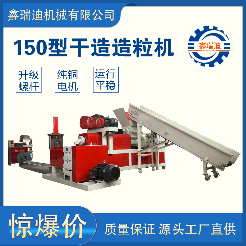 干造膜料造粒機可分為干造和水造,兩種機型不一樣,是將廢舊塑料進行分類,將廢舊編織袋送入破碎機進行破碎,然后經過磨擦清洗機清洗,將破碎清洗好的料放入漂洗池里漂洗,讓編織袋所含雜質進行分離,雜質沉淀,通過撈料機將我們所需的編織袋破碎料撈起備用;將漂洗好的料通過上料機投入造粒機主機,通過擠壓、輸送、翻滾、加熱等程序達到塑化均勻擠出,再經過副機擠壓拉條,冷卻后切粒。